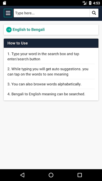 พจนานุกรมนี้ใช้ฐานข้อมูลจาก Bangla Academy ซึ่งเป็นพจนานุกรมที่ใหญ่ที่สุดในโลก มีคำและวลีมากกว่า 200,000 คำ ซึ่งทำให้มีขนาดใหญ่และมีประโยชน์มาก นอกจากนี้ยังมีคำพ้องความหมายและคำอื่นๆ จำนวนมากที่เกี่ยวข้องกับความหมายเดียวกัน ซึ่งทำให้ครอบคลุมและแม่นยำมาก